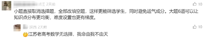 有网友认为,这一的高考数学题型设计,更有区分度,能帮助大学提前筛选出优秀学生。